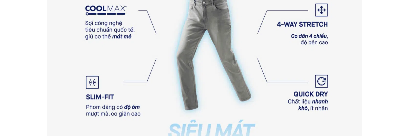 Quần jean nam co giãn xám bạc Menswear pants có Túi MS30